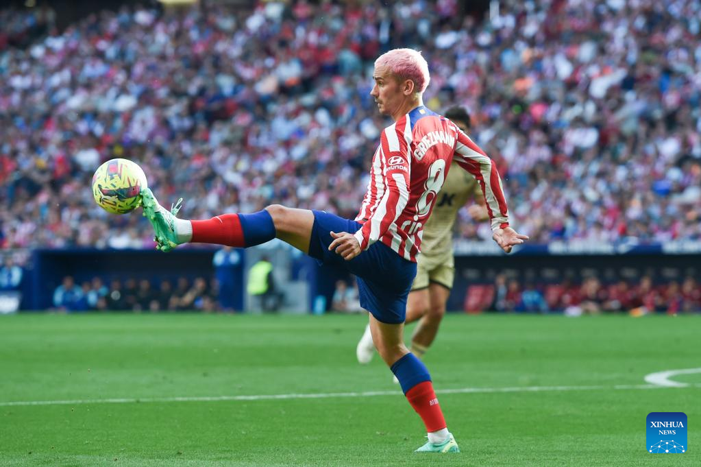 Atletico de Madrid's Antoine Griezmann competes during a Spanish La Liga football match between Atletico de Madrid and UD Almeria in Madrid, Spain, on April 16, 2023. (Photo by Gustavo Valiente/Xinhua)