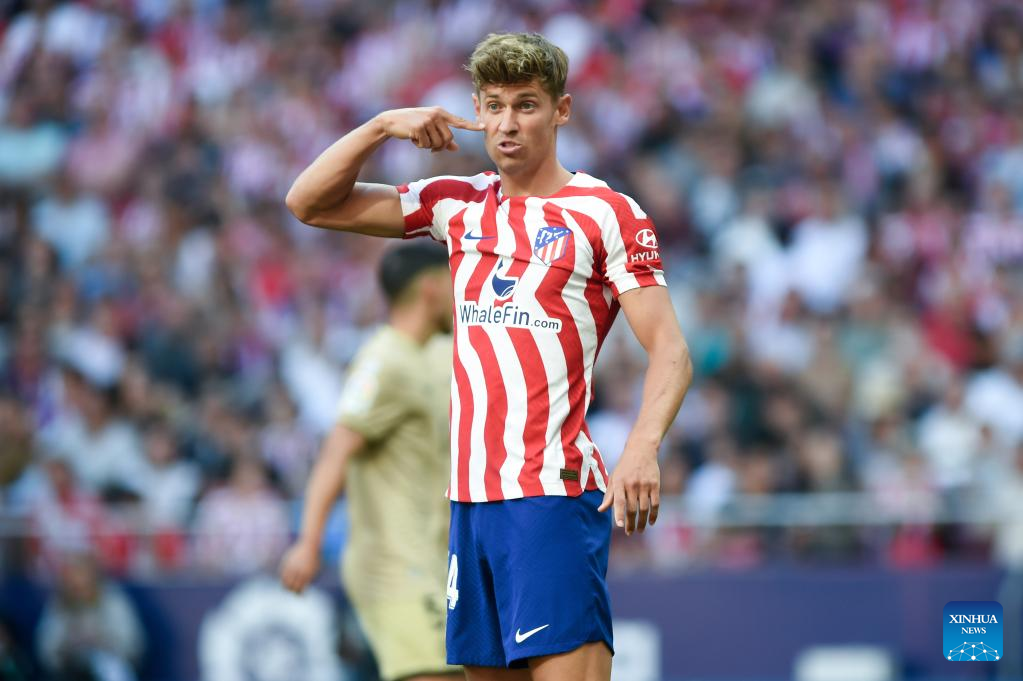Atletico de Madrid's Marcos Llorente competes during a Spanish La Liga football match between Atletico de Madrid and UD Almeria in Madrid, Spain, on April 16, 2023. (Photo by Gustavo Valiente/Xinhua)
