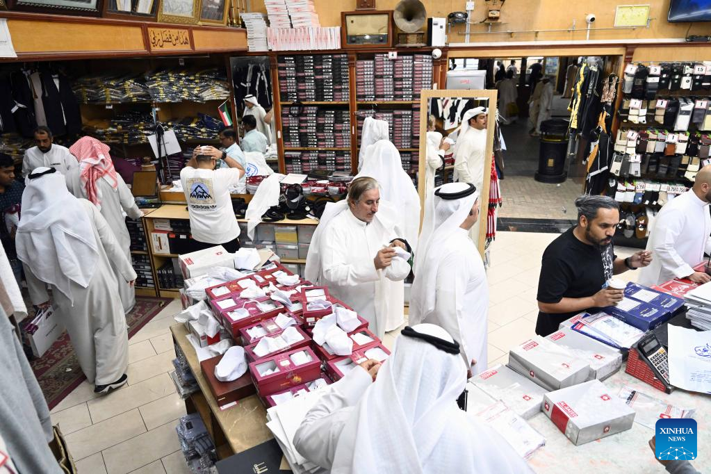 People are seen inside a shop in Capital Governorate, Kuwait, April 16, 2023. People in Kuwait go shopping in preparation of the upcoming Eid al-Fitr, which marks the end of the Islamic holy month of Ramadan. (Photo by Asad/Xinhua)