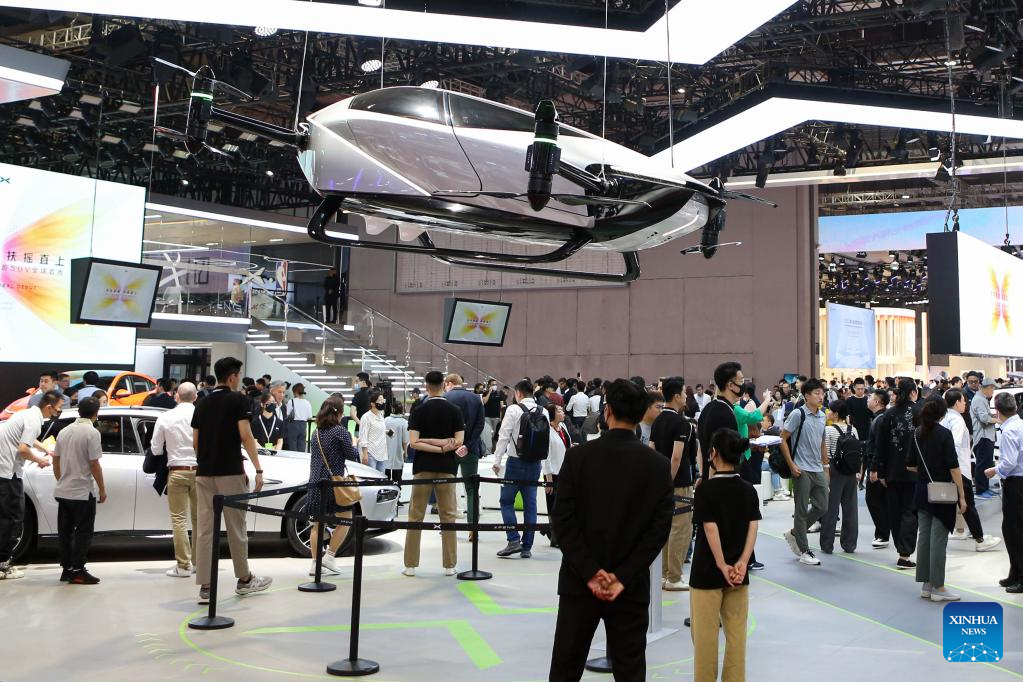 An XPeng X2 flying car is displayed at the 20th Shanghai International Automobile Industry Exhibition in east China's Shanghai, April 18, 2023.