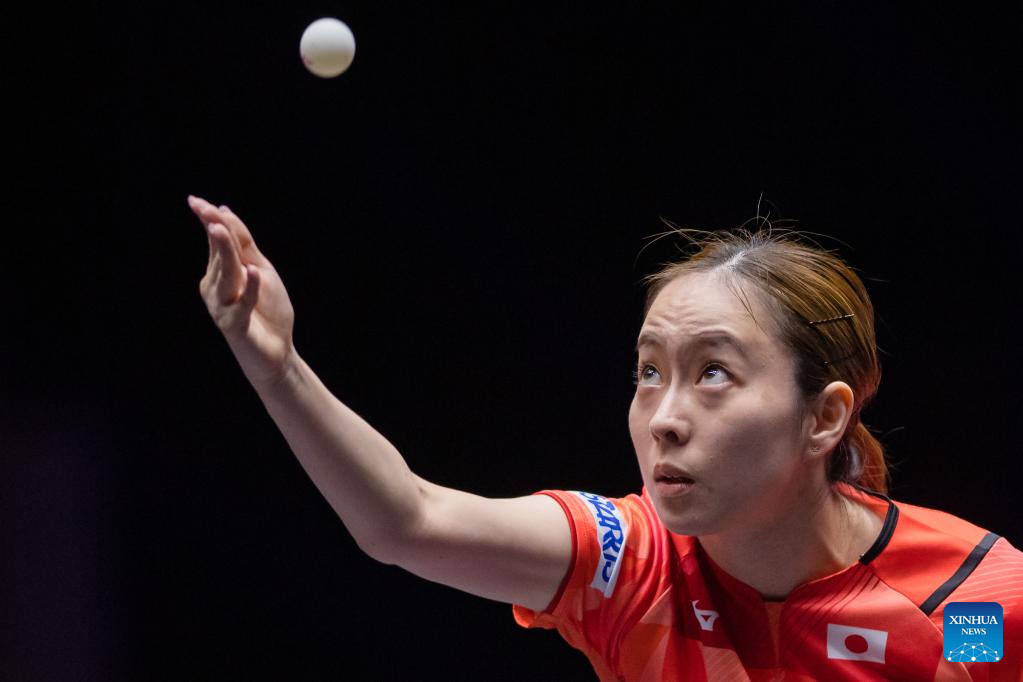 Ishikawa Kasumi of Japan serves during the women's singles round of 16 match against Chen Meng of China at the WTT Champions Macao 2023 in Macao, south China, April 19, 2023. (Xinhua/Cheong Kam Ka)