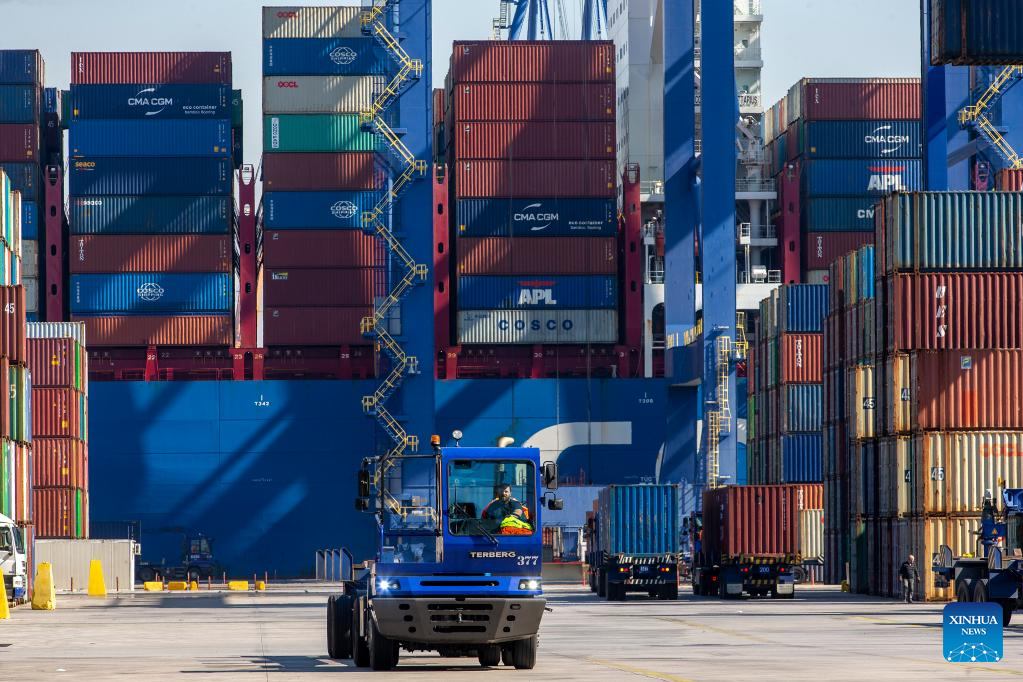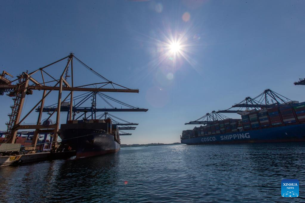 Container ships dock at the container terminal II and III in Piraeus port, Greece, Feb. 16, 2023. Over 13 years of win-win cooperation between China's COSCO Shipping and Greece's largest port Piraeus have proven to be an exemplary case of common development, top managers and employees of the landmark investment project have said. (Xinhua/Marios Lolos)