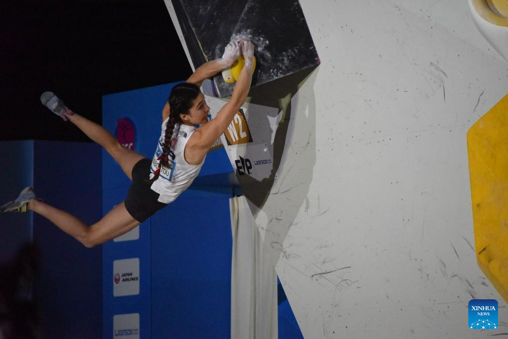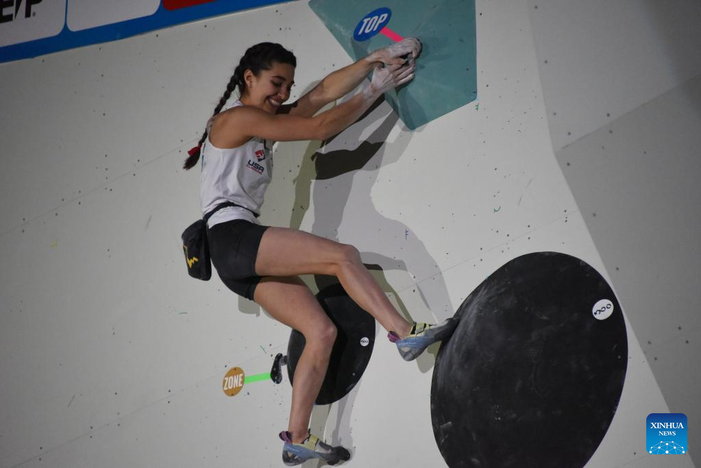 Brooke Raboutou of the United States competes during the women's boulder final of IFSC Climbing World Cup 2023 in Hachioji, Japan on April 22, 2023. (Xinhua/Yue Chenxing)