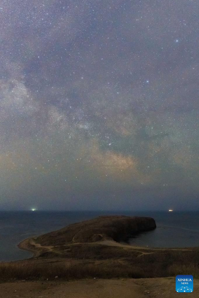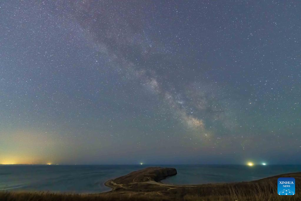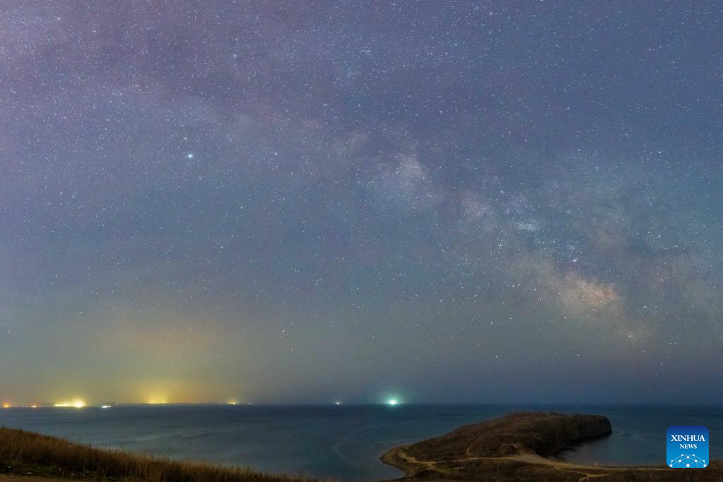 This photo taken on April 22, 2023 shows the Milky Way over Chernyshev Bay in Vladivostok, Russia. (Photo by Guo Feizhou/Xinhua)