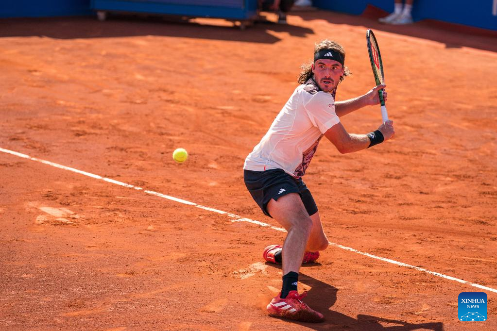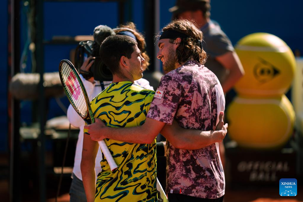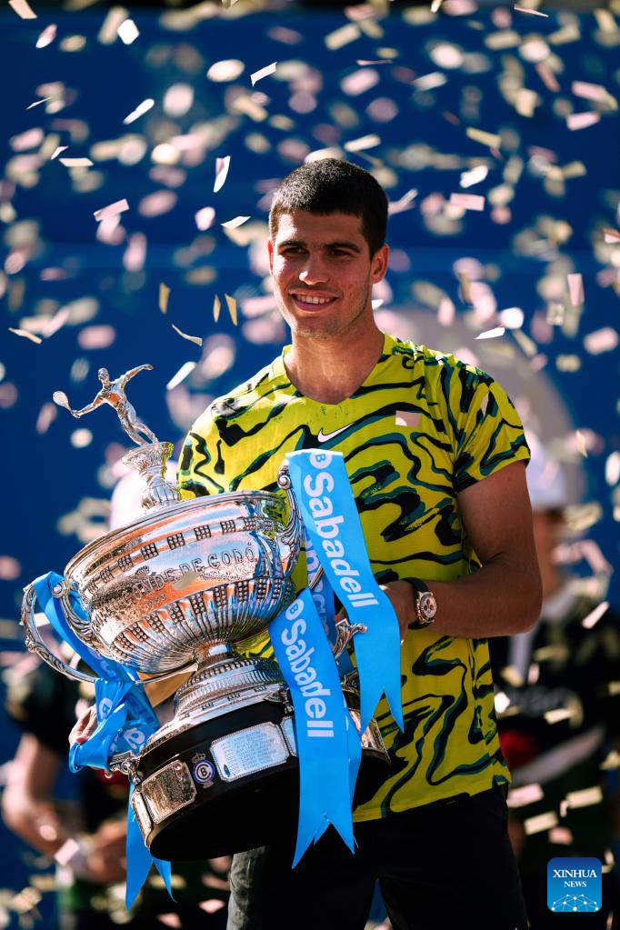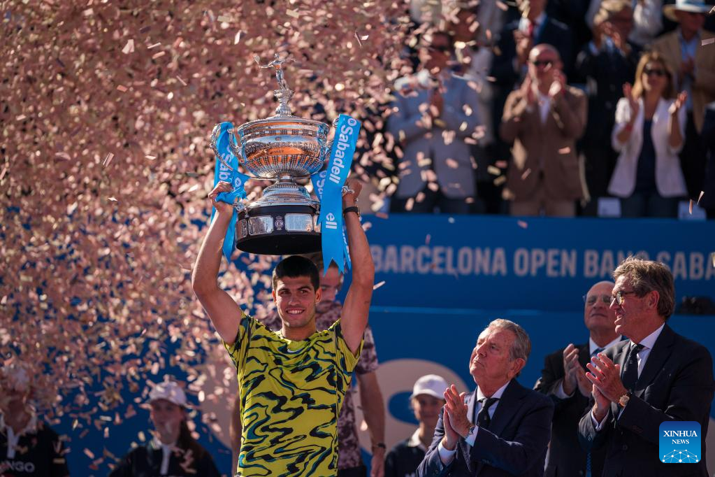 BARCELONA, April 23 (Xinhua) -- Carlos Alcaraz stormed to his second title in the ATP Barcelona Open on Sunday with a resounding 6-3, 6-4 victory over Stefanos Tsitsipas.