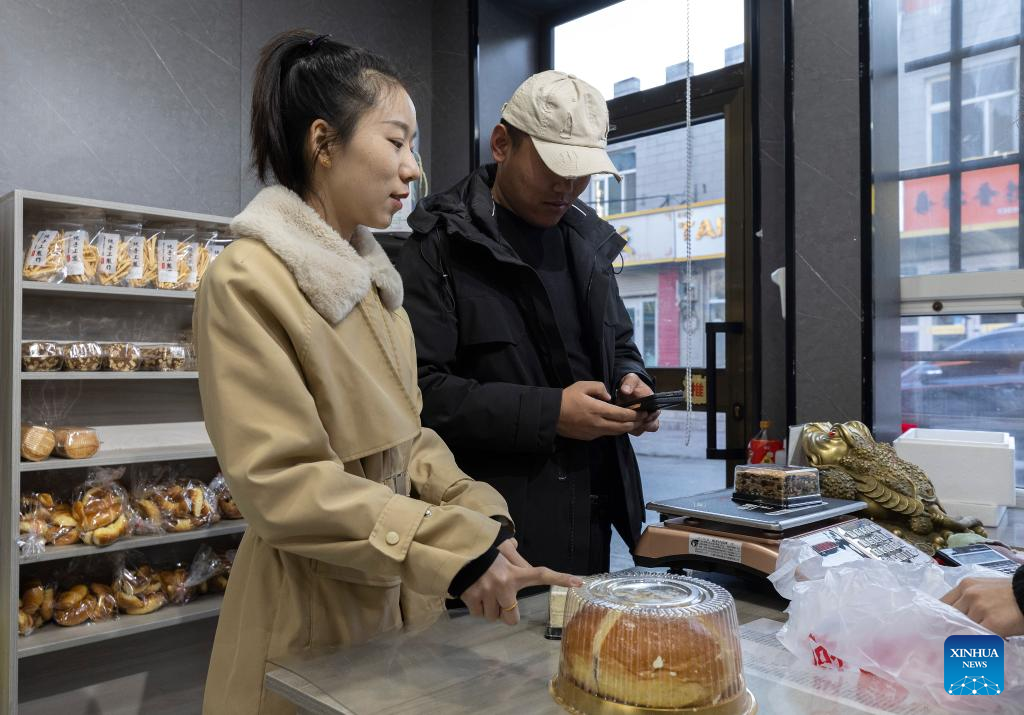 Costomers buy Tacheng cheese bread at a store in Tacheng, northwest China's Xinjiang Uygur Autonomous Region, April 1, 2023. Located on the border of China and Kazakhstan, the small city of Tacheng is home to people of 25 ethnic groups.
