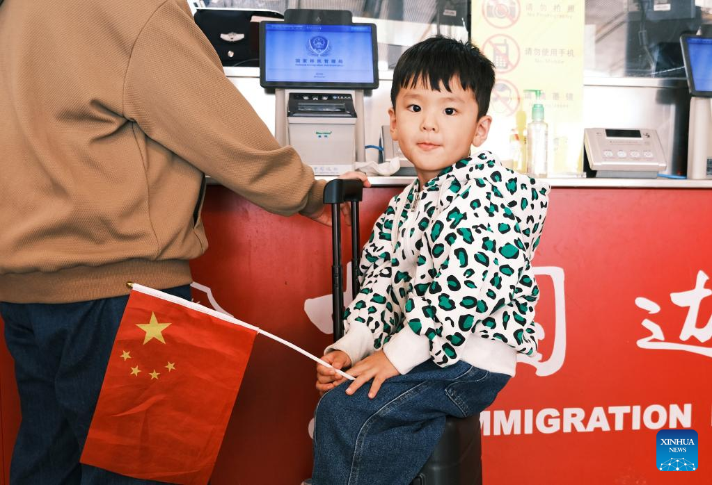 A Chinese national evacuated from Sudan goes through entry formalities at Beijing Capital International Airport, in Beijing, capital of China, April 29, 2023. The first charter flight carrying Chinese nationals evacuated from Sudan arrived at Beijing Capital International Airport from Jeddah, Saudi Arabia, on Saturday morning. (Photo by Wang Chunhui/Xinhua)