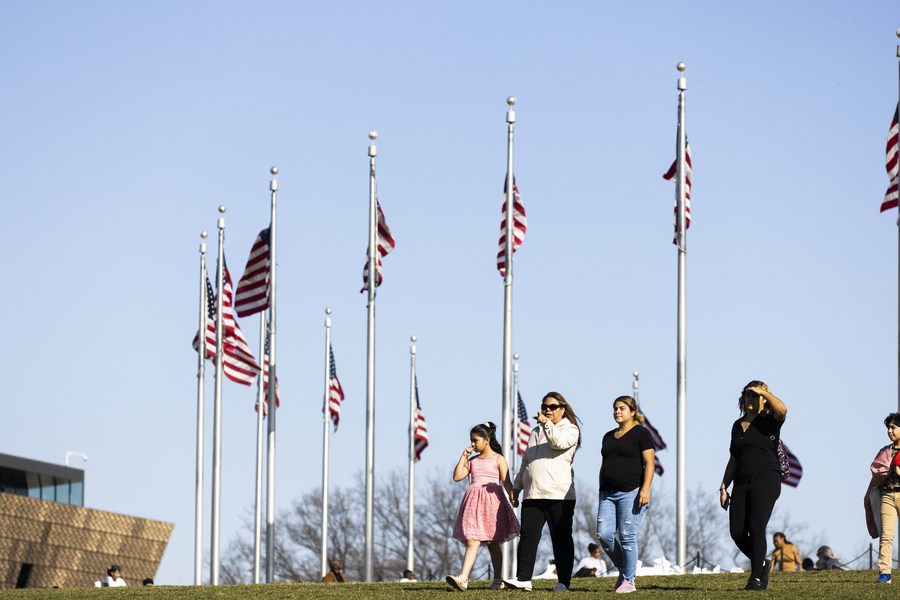 People visit the National Mall in Washington, D.C., the United States, on Feb. 23, 2023. (Photo by Aaron Schwartz/Xinhua)