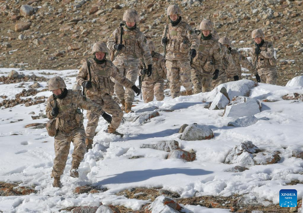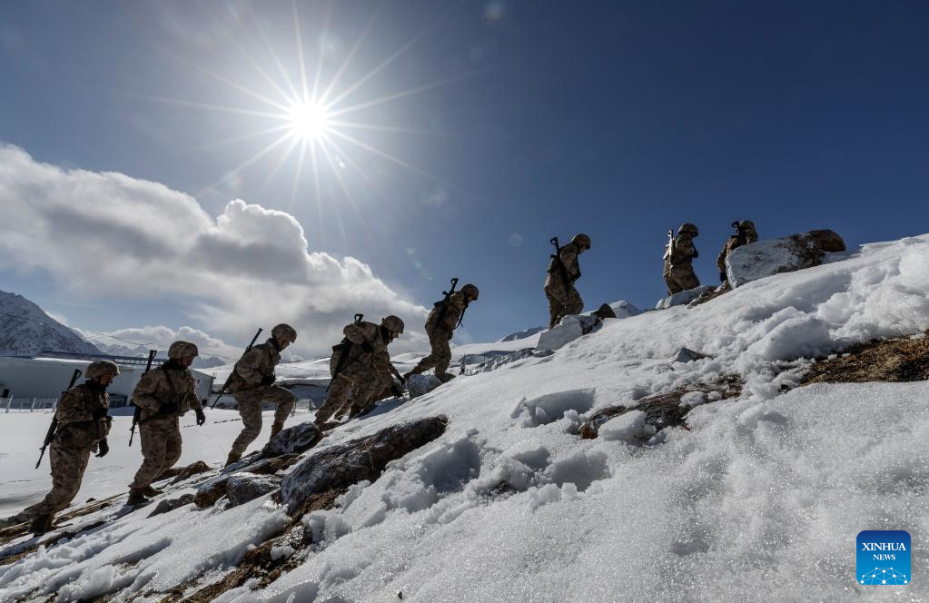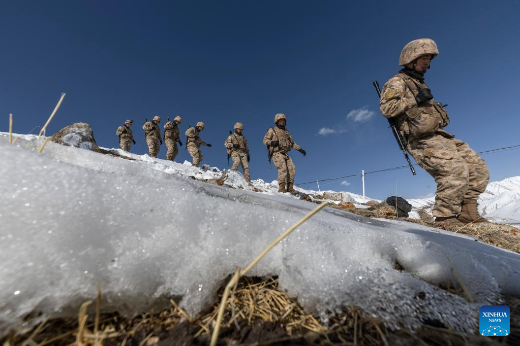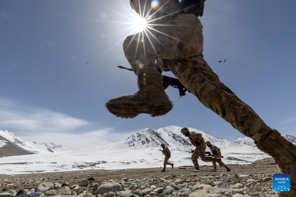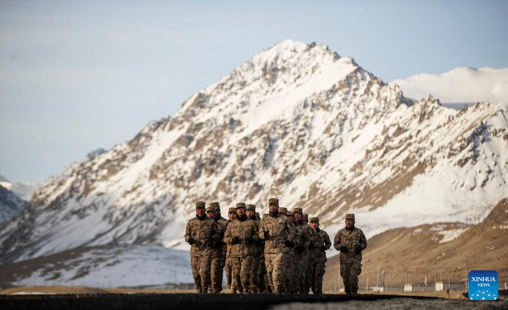 Soldiers train in Khunjerab, northwest China's Xinjiang Uygur Autonomous Region, April 13, 2023. Gao Guanghui, a recruit who had just joined the army for 7 months, was shocked when he walked into the honor room of the border defense regiment in Khunjerab, northwest China's Xinjiang Uygur Autonomous Region.