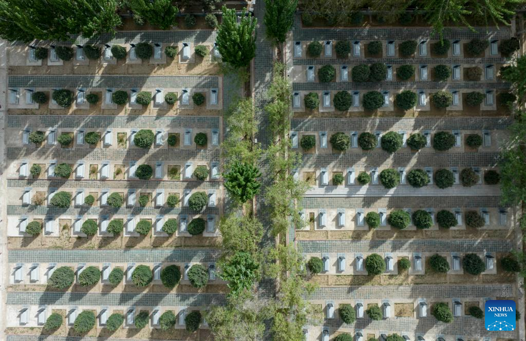 This aerial photo taken on April 16, 2023 shows the Yecheng Martyrs Cemetery in Yecheng, northwest China's Xinjiang Uygur Autonomous Region.