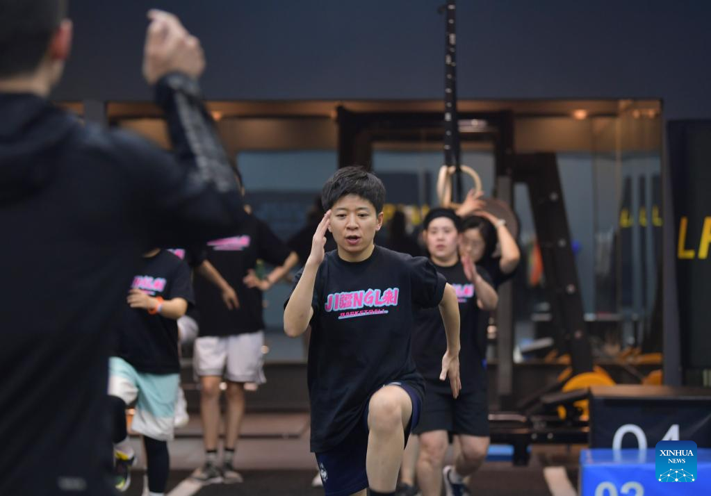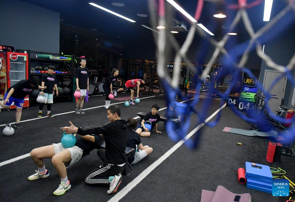 Wang Na attends a training session at a gym in Urumqi, northwest China's Xinjiang Uygur Autonomous Region, March 7, 2023. In Urumqi, a group of female basketball players have formed a basketball club named Jiang Lai. The club members are individuals from ethnic groups such as Han, Uygur, Kazak, Mongolian and Hui. According to Wang Na, the founder of the club, the name Jiang Lai means the team comes from Xinjiang.