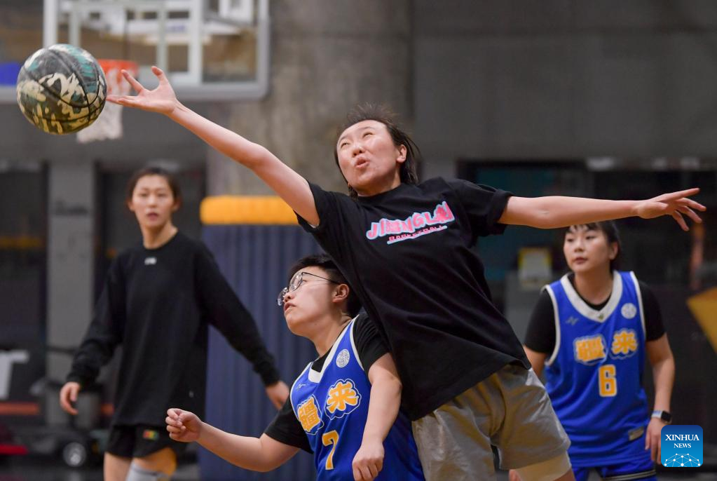 In the past few years, its membership has grown from 15 to nearly 100. With their growing influence, they organized a series of women's basketball tournaments. "I hope that through our efforts, more and more girls who really love basketball or want to start to play it could join us," said Wang. (Xinhua/Wang Fei)