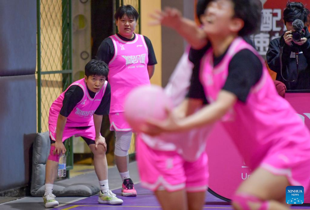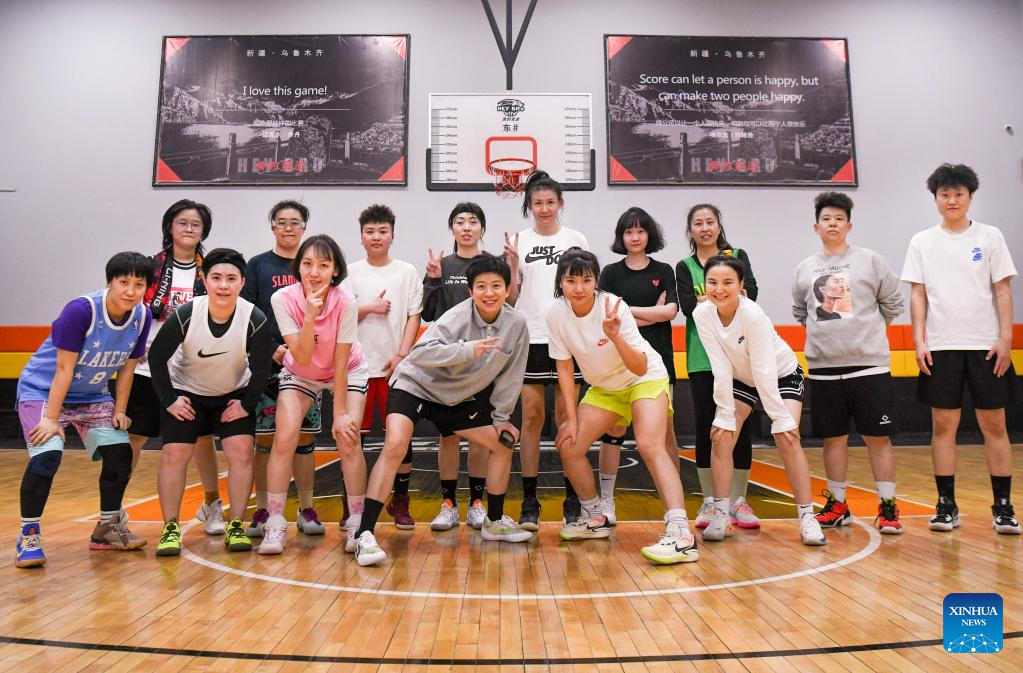Members of Jiang Lai Women's Basketball Club compete at a women's basketball tournament in Urumqi, northwest China's Xinjiang Uygur Autonomous Region, April 2, 2023. In Urumqi, a group of female basketball players have formed a basketball club named Jiang Lai. The club members are individuals from ethnic groups such as Han, Uygur, Kazak, Mongolian and Hui. According to Wang Na, the founder of the club, the name Jiang Lai means the team comes from Xinjiang.