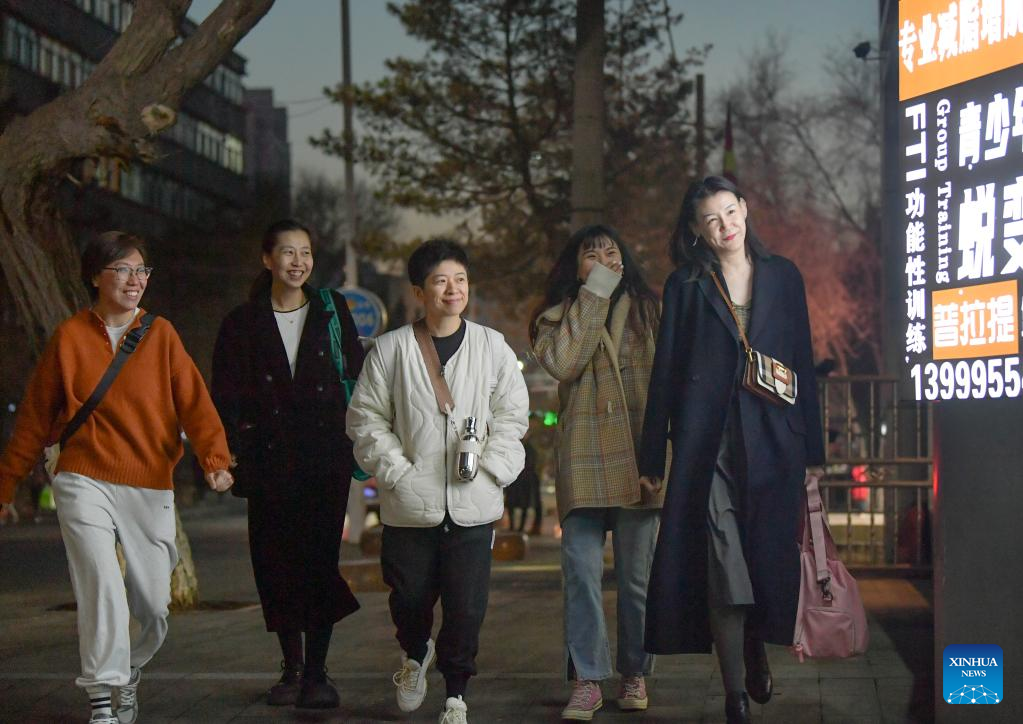 Wang Na (C) walks to a gym for training with other members of Jiang Lai Women's Basketball Club in Urumqi, northwest China's Xinjiang Uygur Autonomous Region, March 7, 2023. In Urumqi, a group of female basketball players have formed a basketball club named Jiang Lai. The club members are individuals from ethnic groups such as Han, Uygur, Kazak, Mongolian and Hui. According to Wang Na, the founder of the club, the name Jiang Lai means the team comes from Xinjiang.