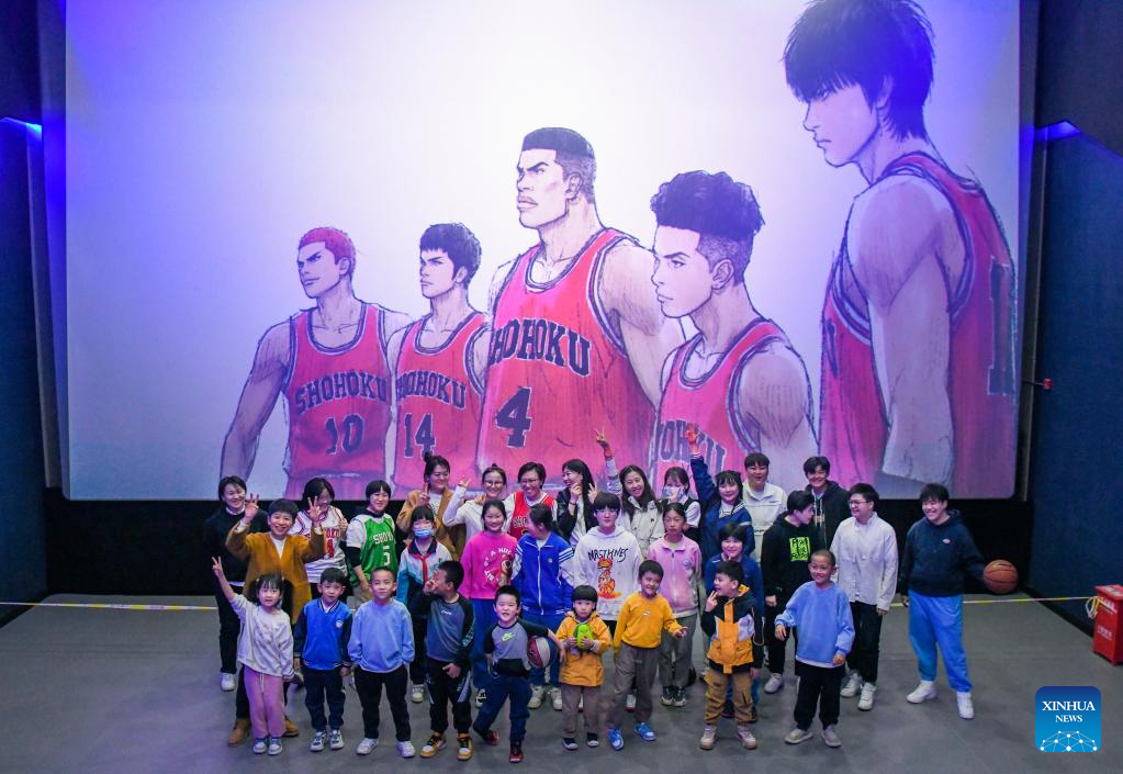 Members of Jiang Lai Women's Basketball Club pose for a photo after watching the film Slam Dunk in Urumqi, northwest China's Xinjiang Uygur Autonomous Region, April 20, 2023. In Urumqi, a group of female basketball players have formed a basketball club named Jiang Lai. The club members are individuals from ethnic groups such as Han, Uygur, Kazak, Mongolian and Hui. According to Wang Na, the founder of the club, the name Jiang Lai means the team comes from Xinjiang.