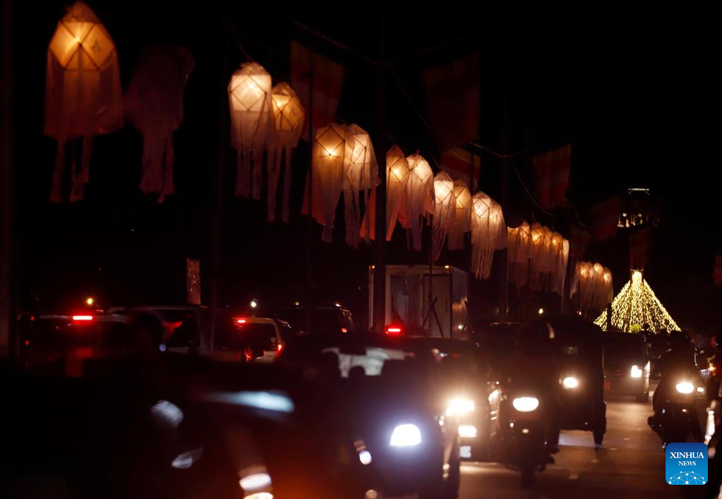 Lanterns marking Vesak Day are seen at night in Colombo, Sri Lanka, May 5, 2023. (Photo by Ajith Perera/Xinhua)