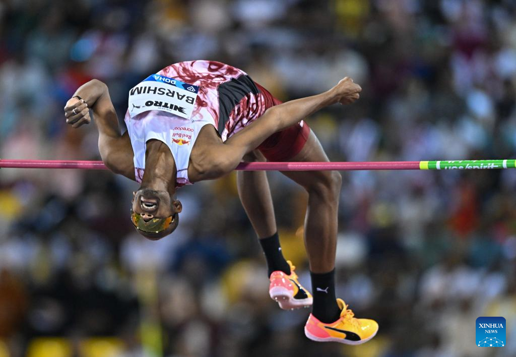 Mutaz Essa Barshim of Qatar competes during the men's High Jump at the 2023 Diamond League athletics meeting at Suhaim bin Hamad Stadium in Doha, capital of Qatar, May 5, 2023. (Photo by Nikku/Xinhua)