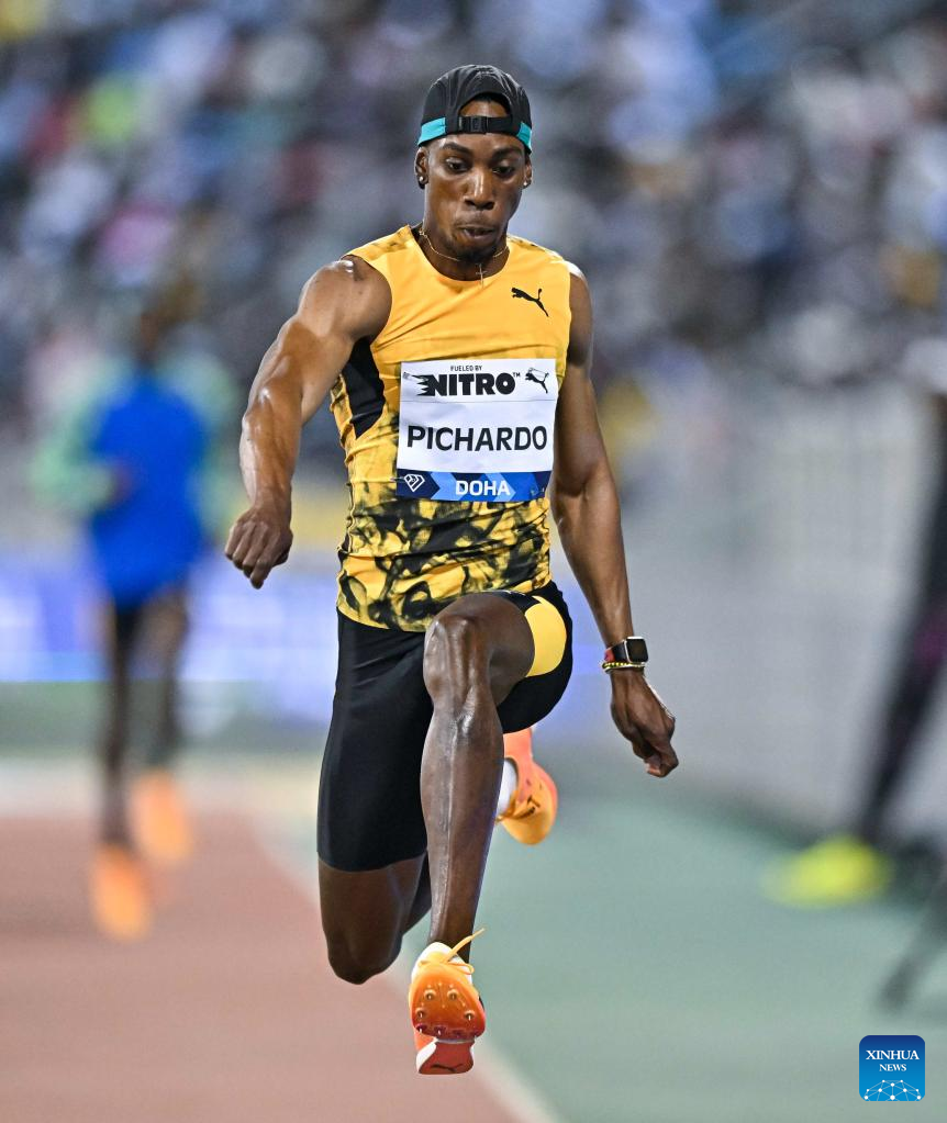 Pedro Pichardo of Portugal competes during the men's Triple Jump at the 2023 Diamond League athletics meeting at Suhaim bin Hamad Stadium in Doha, capital of Qatar, May 5, 2023. (Photo by Nikku/Xinhua)