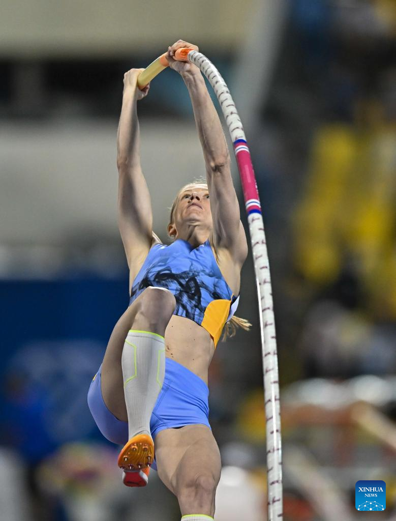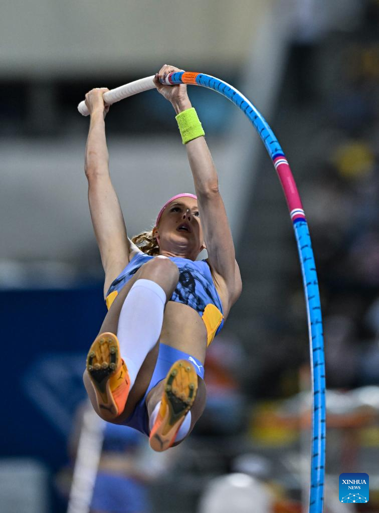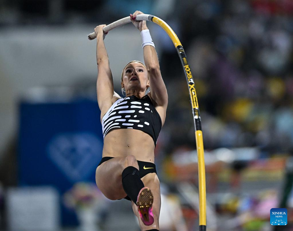 Katie Moon of the United States competes during the women's Pole Vault at the 2023 Diamond League athletics meeting at Suhaim bin Hamad Stadium in Doha, capital of Qatar, May 5, 2023. (Photo by Nikku/Xinhua)