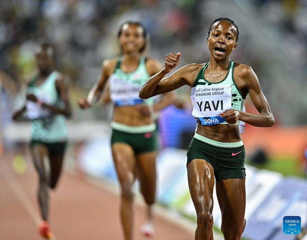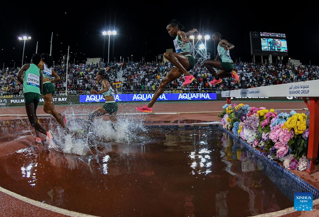 Athletes compete during the women's 3000m Steeplechase race at the 2023 Diamond League athletics meeting at Suhaim bin Hamad Stadium in Doha, capital of Qatar, May 5, 2023. (Photo by Nikku/Xinhua)