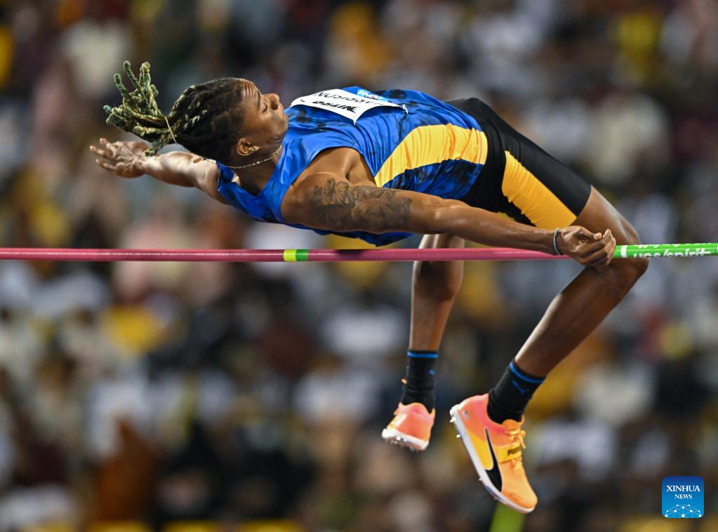 JuVaughn Harrison of the United States competes during the men's High Jump at the 2023 Diamond League athletics meeting at Suhaim bin Hamad Stadium in Doha, capital of Qatar, May 5, 2023. (Photo by Nikku/Xinhua)