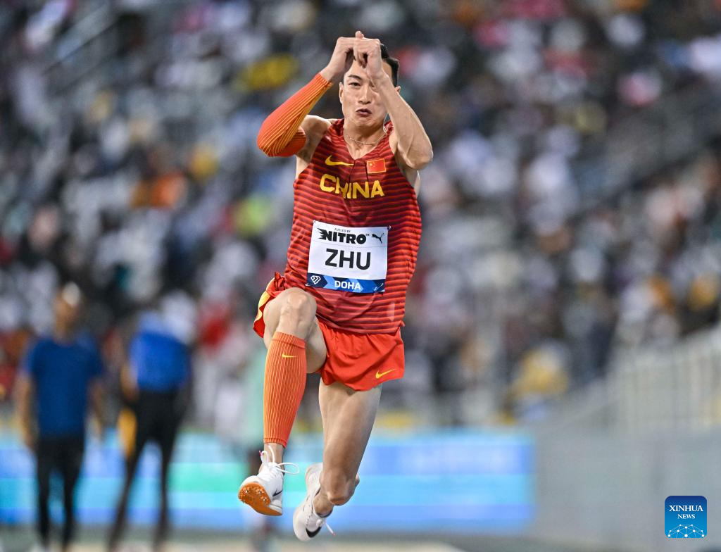 Zhu Yaming of China competes during the men's Triple Jump at the 2023 Diamond League athletics meeting at Suhaim bin Hamad Stadium in Doha, capital of Qatar, May 5, 2023. (Photo by Nikku/Xinhua)