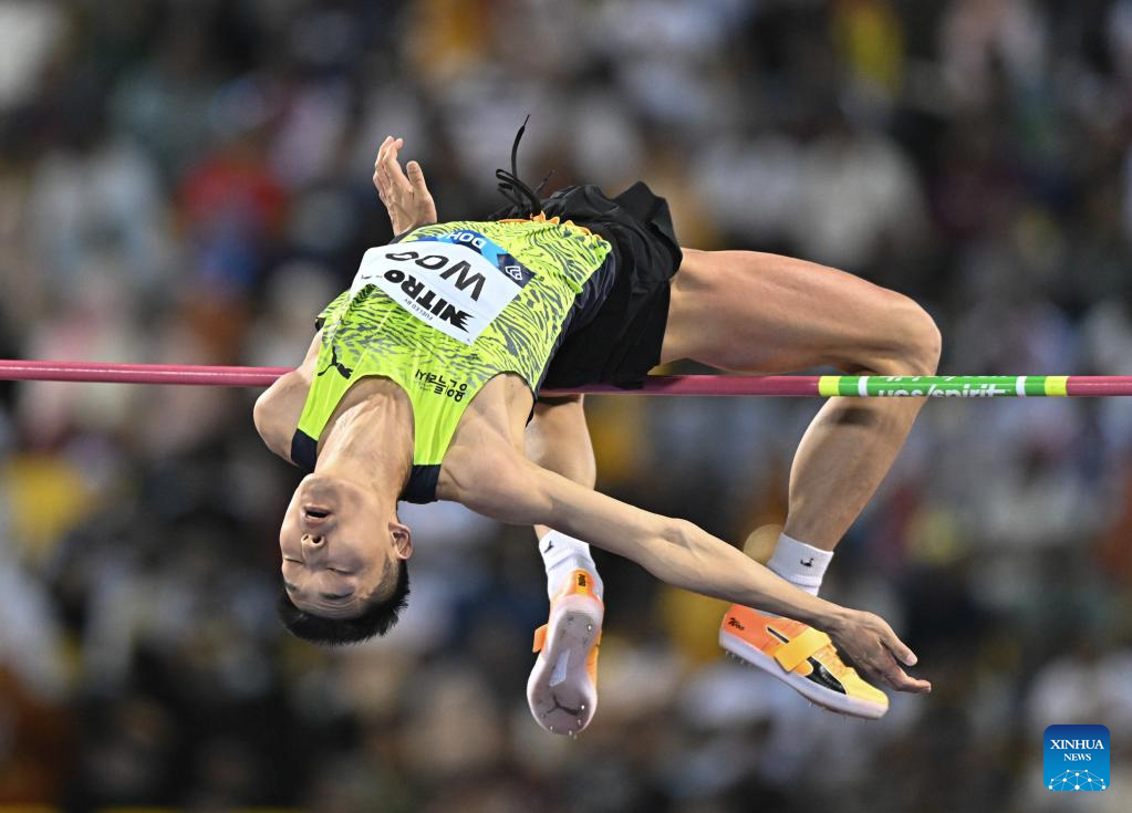 Woo Sanghyeok of South Korea competes during the men's High Jump at the 2023 Diamond League athletics meeting at Suhaim bin Hamad Stadium in Doha, capital of Qatar, May 5, 2023. (Photo by Nikku/Xinhua)