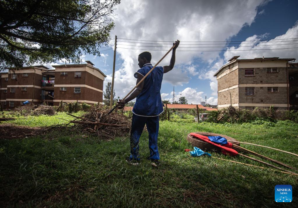 Children practice freerunning tricks in Kiambu County near Nairobi, Kenya, May 6, 2023. (Xinhua/Li Yahui)