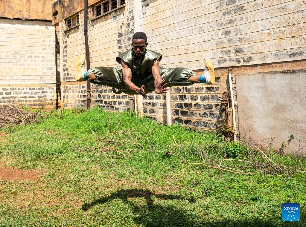 A Kungfu practitioner practices in Kiambu County near Nairobi, Kenya, May 6, 2023. (Xinhua/Li Yahui)