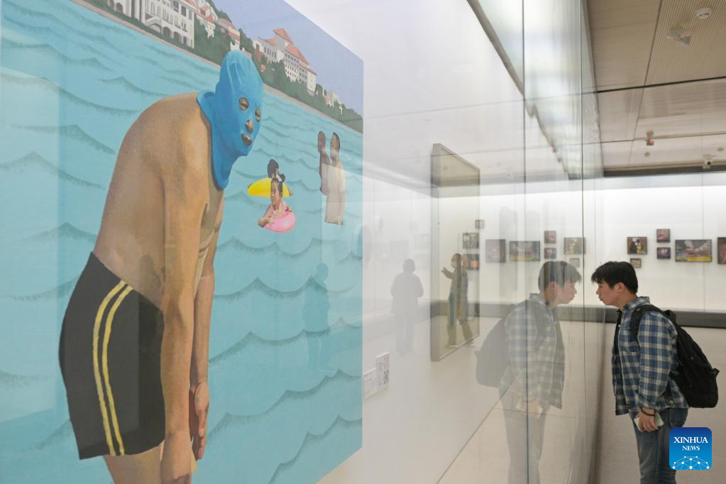 Visitors view oil paintings at 2023 China Central Academy of Fine Arts (CAFA) postgraduate works exhibition in Beijing, capital of China, May 9, 2023. Over 3,000 pieces of postgraduate works were displayed in the exhibition, including paintings, sculptures, digital art, etc. (Xinhua/Yin Dongxun)