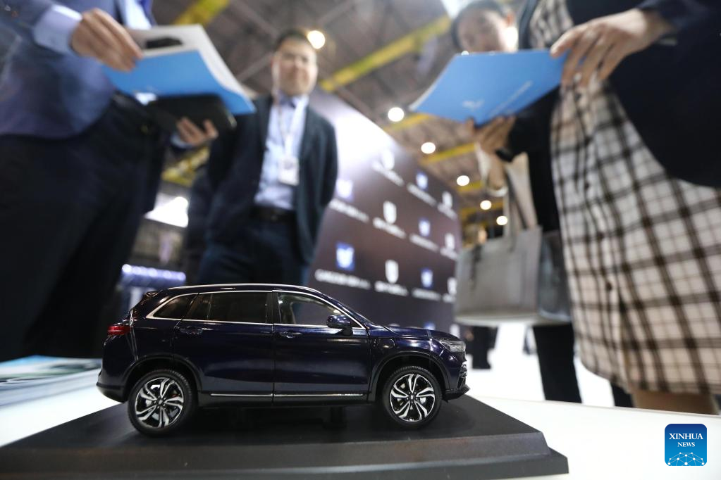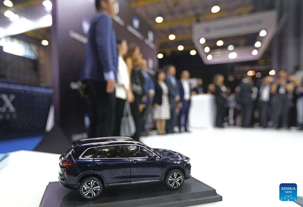 A new Chinese Skywell car is launched at the e-MotorShow 2023 in Beirut, Lebanon, on May 10, 2023. The e-MotorShow Middle East was held in Beirut from May 10 to 14. (Xinhua/Bilal Jawich)