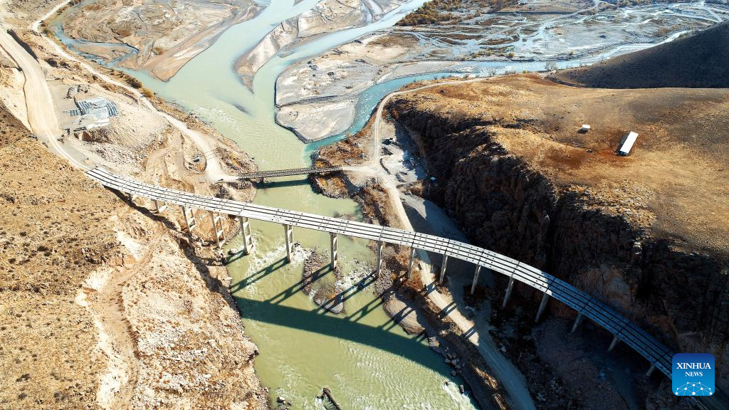 This photo taken on Nov. 10, 2021 shows a bridge of the second phase of the north-south highway built by China in Kyrgyzstan. A new highway built by China within the framework of the Belt and Road Initiative (BRI) will not only help Kyrgyzstan in economic development through boosting road connectivity, but also create international transport corridors that will promote growth throughout Central Asia, Kyrgyz specialists have said. (Photo by Roman/Xinhua)