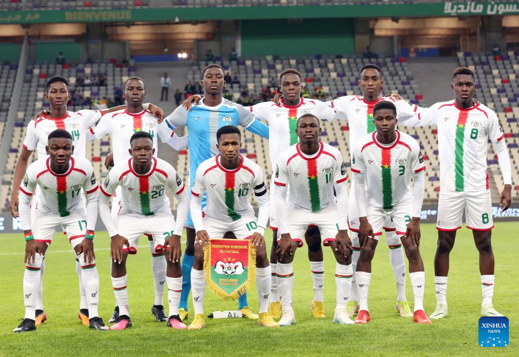 Burkina Faso's line-up players pose for a group photo ahead of the U17 Africa Cup of Nations quarterfinal match between Nigeria and Burkina Faso in Algiers, Algeria, May 11, 2023. (Xinhua)