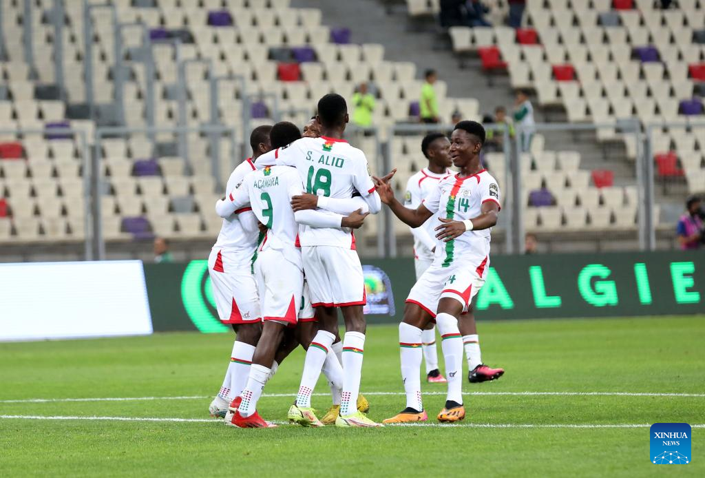 Burkina Faso's players celebrate a goal during the U17 Africa Cup of Nations quarterfinal match between Nigeria and Burkina Faso in Algiers, Algeria, May 11, 2023. (Xinhua)