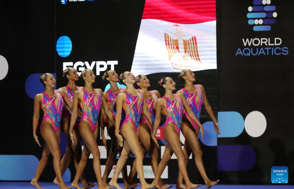 Team Egypt perform during the final of mixed team technical at World Aquatics artistic swimming world cup 2023 in Hurghada, Egypt, May 13, 2023. (Xinhua/Ahmed Gomaa)
