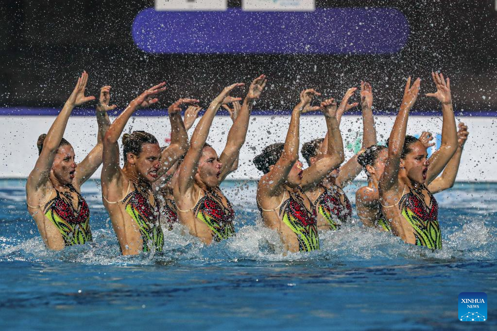 Team Italy perform during the final of mixed team technical at World Aquatics artistic swimming world cup 2023 in Hurghada, Egypt, May 13, 2023. (Xinhua/Ahmed Gomaa)