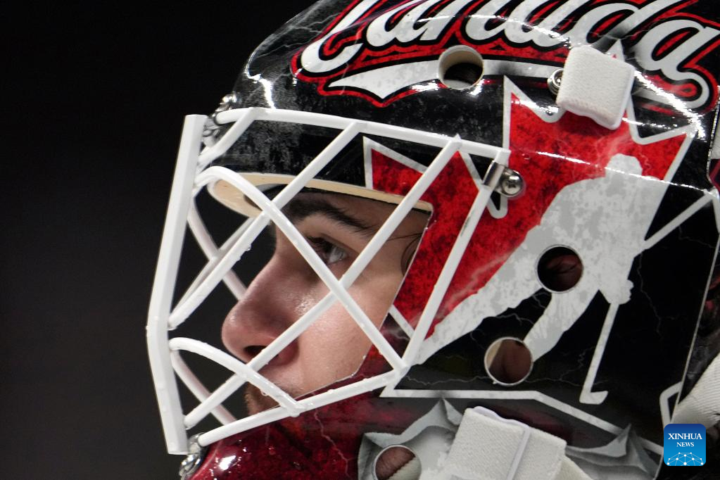 Canada's goalkeeper Devon Levi reacts during the Group B match between Slovenia and Canada at the 2023 IIHF Ice Hockey World Championship in Riga, Latvia, May 14, 2023. (Photo by Edijs Palens/Xinhua)