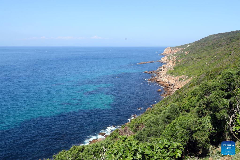 This photo taken on May 12, 2023 shows the seaside scenery seen on a mountain in Tangier, Morocco. (Xinhua/Sui Xiankai)