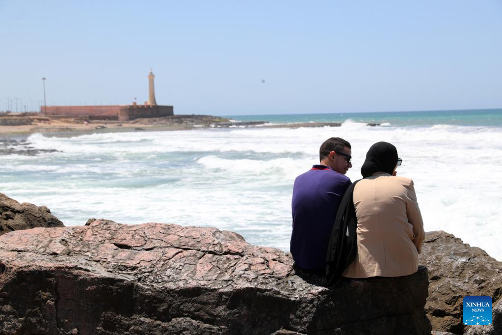 People enjoy their leisure time on the seaside in Rabat, Morocco, May 13, 2023. (Xinhua/Sui Xiankai)