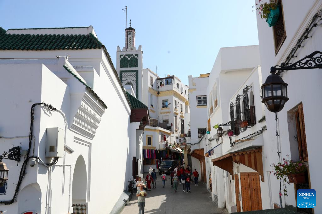 People visit an old market in Tangier, Morocco, May 12, 2023. (Xinhua/Sui Xiankai)