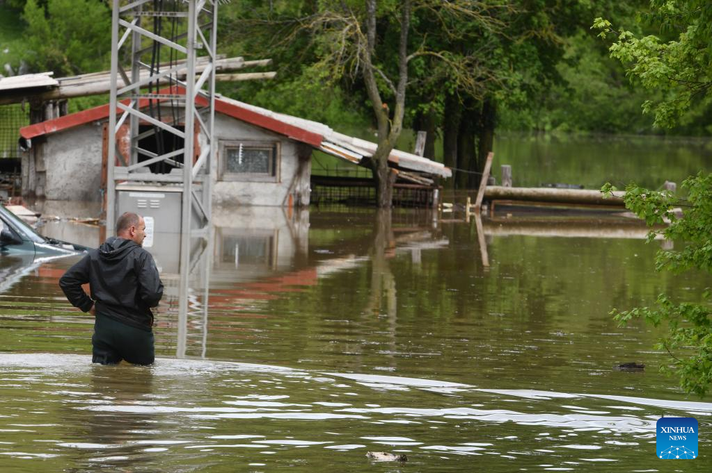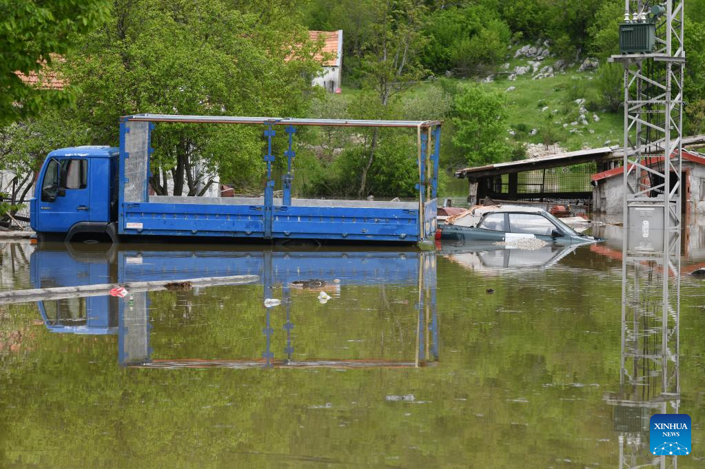 Photo taken on May 15, 2023 shows a flooded area in Gracac, Croatia. (Hrvoje Jelavic/PIXSELL via Xinhua)