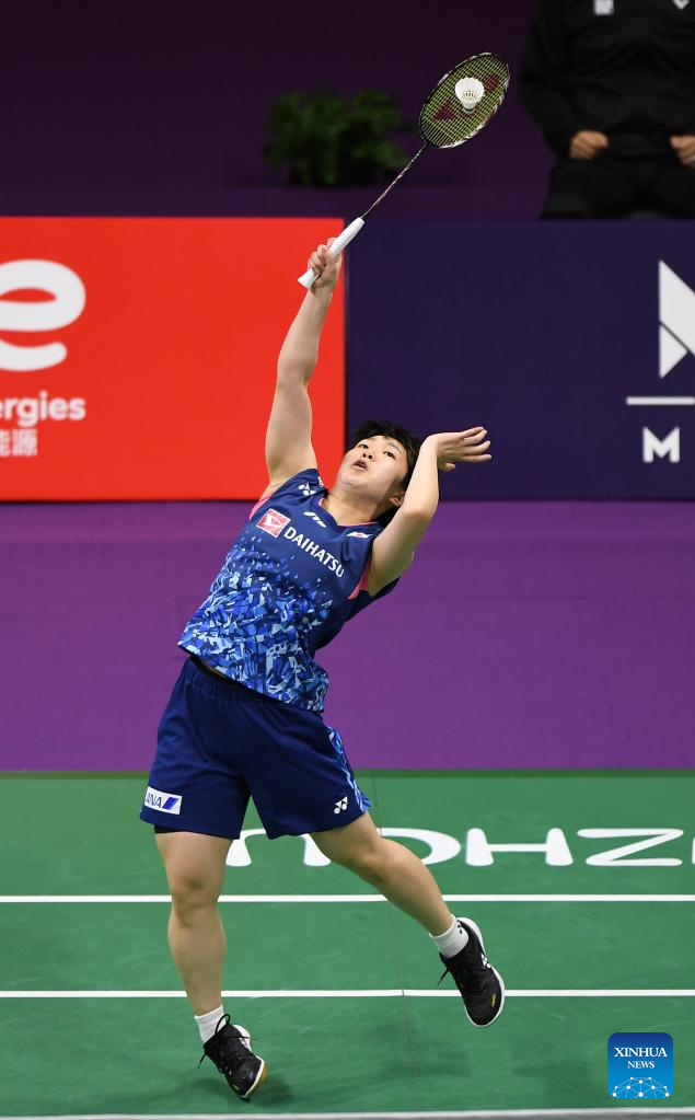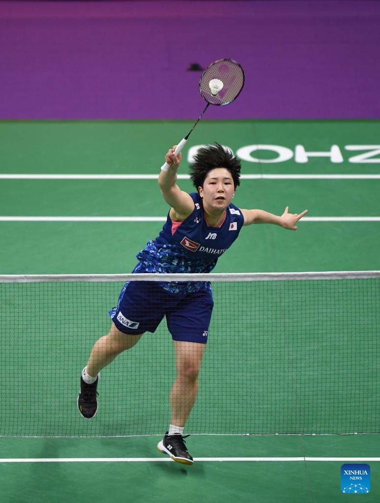 Yamaguchi Akane of Japan competes during the women's singles match against An Se Young of South Korea of Group D match between Japan and South Korea at BWF Sudirman Cup in Suzhou, east China's Jiangsu Province, May 17, 2023. (Xinhua/Hou Zhaokang)