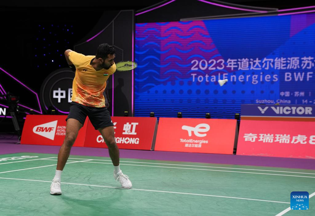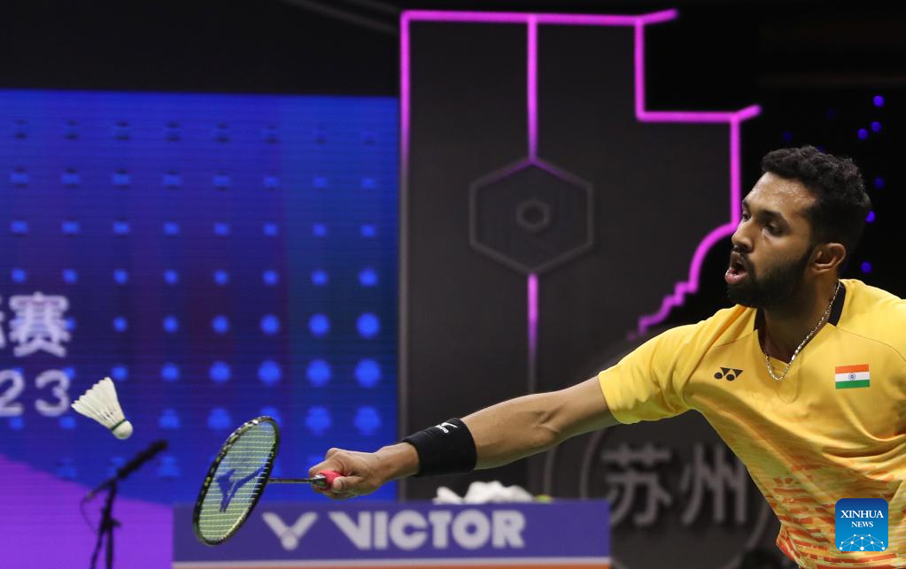 Haseena Sunil Kumar Prannoy of India competes during the men's singles match against Jack Yu of Australia during the group C match between India and Australia at BWF Sudirman Cup in Suzhou, east China's Jiangsu Province, May 17, 2023. (Xinhua/Jia Haocheng)