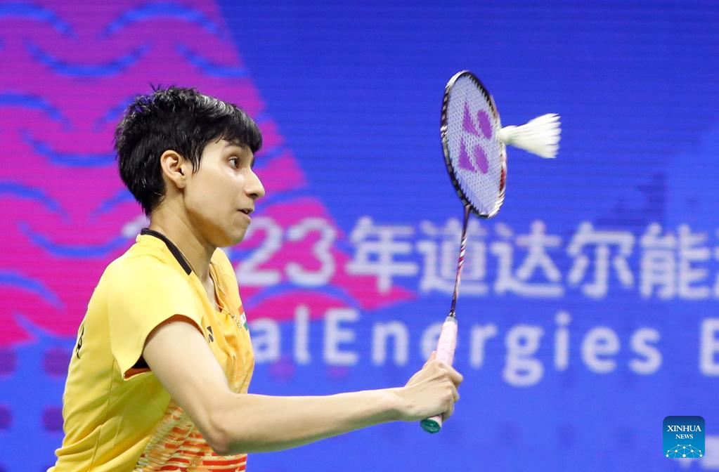 Anupama Upadhyaya of India competes during the women's singles match against Tiffany Ho of Australia during the group C match between India and Australia at BWF Sudirman Cup in Suzhou, east China's Jiangsu Province, May 17, 2023. (Xinhua/Jia Haocheng)