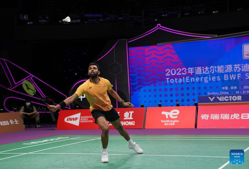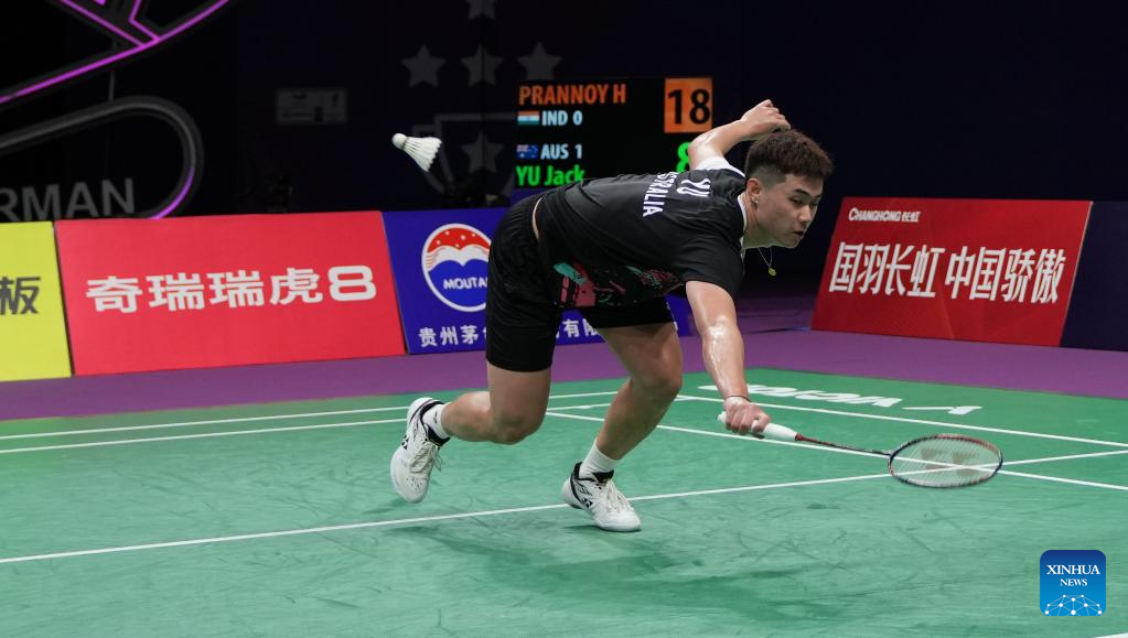 Prannoy H. S. of India competes during the men's singles match against Jack Yu of Australia during the group C match between India and Australia at BWF Sudirman Cup in Suzhou, east China's Jiangsu Province, May 17, 2023. (Xinhua/Liu Wenhui)