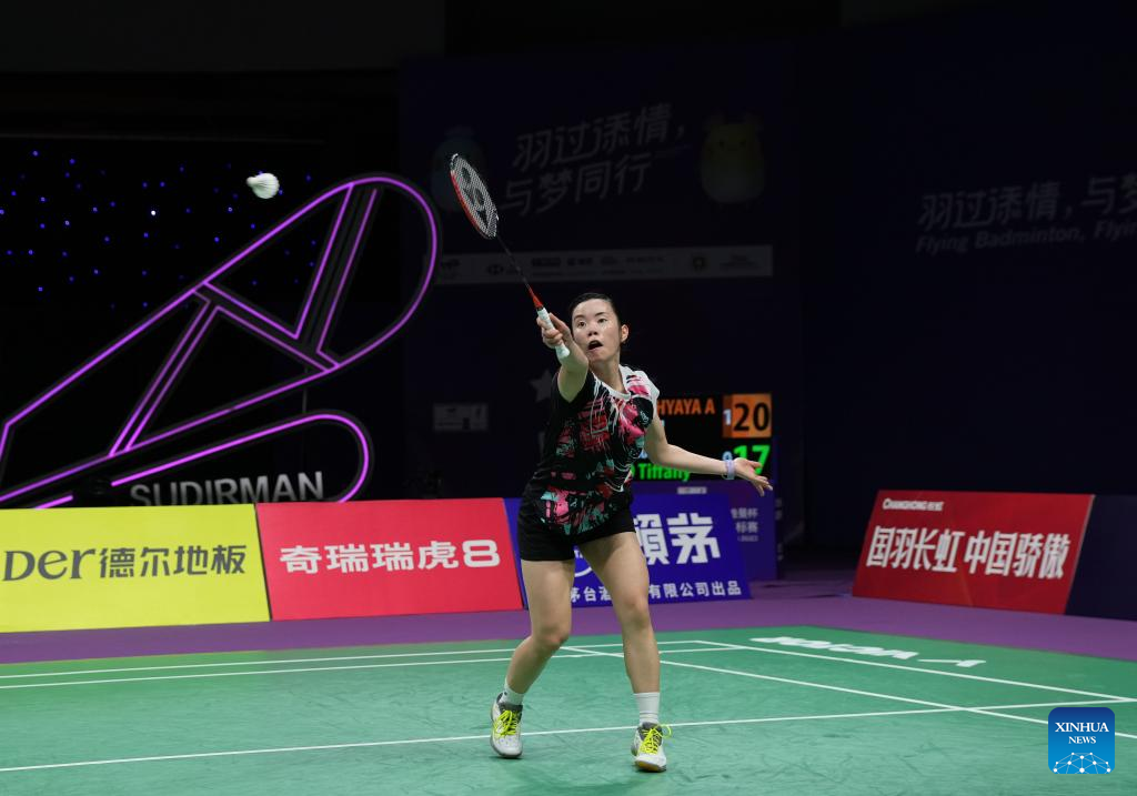 Tiffany Ho of Australia competes during the women's singles match against Anupama Upadhyaya of India during the group C match between India and Australia at BWF Sudirman Cup in Suzhou, east China's Jiangsu Province, May 17, 2023. (Xinhua/Liu Wenhui)
