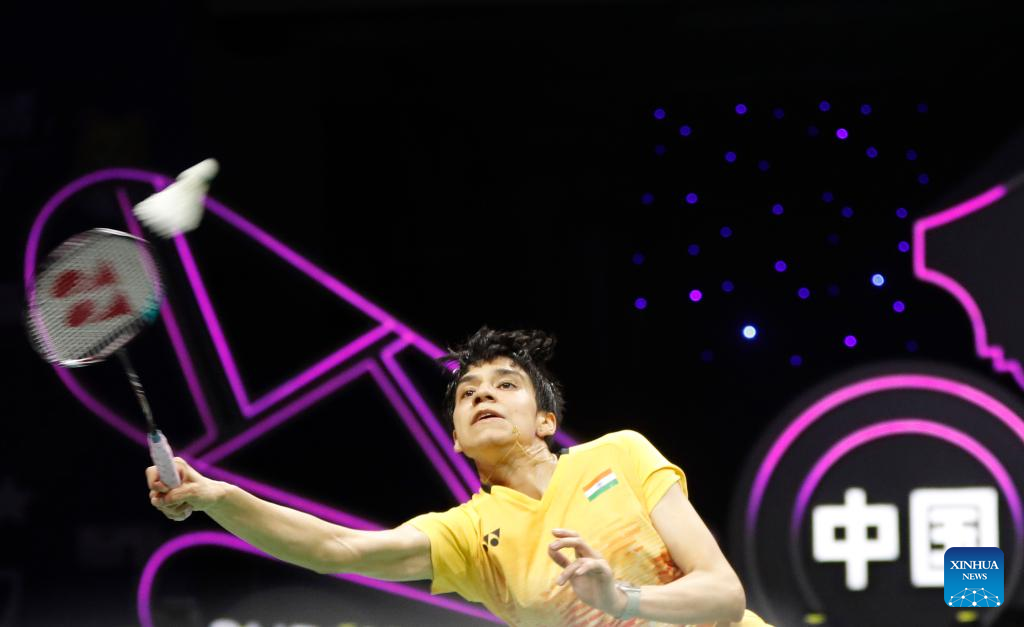 competes during the men's singles match against Jack Yu of Australia during the group C match between India and Australia at BWF Sudirman Cup in Suzhou, east China's Jiangsu Province, May 17, 2023. (Xinhua/Jia Haocheng)