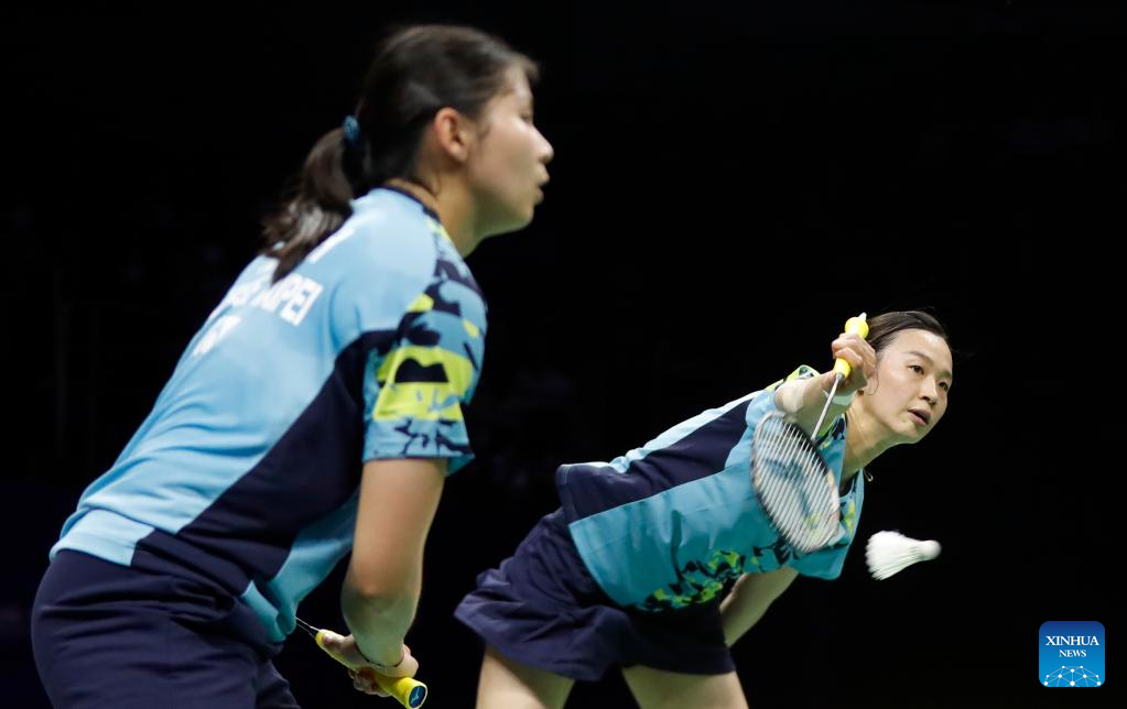 Hsu Ya Ching (L)/Teng Chun Hsun of Chinese Taipei compete in the women's doubles match against Tan Pearly/Thinaah Muralitharan of Malaysia during the group C match between Malaysia and Chinese Taipei at BWF Sudirman Cup in Suzhou, east China's Jiangsu Province, May 17, 2023. (Xinhua/Jia Haocheng)