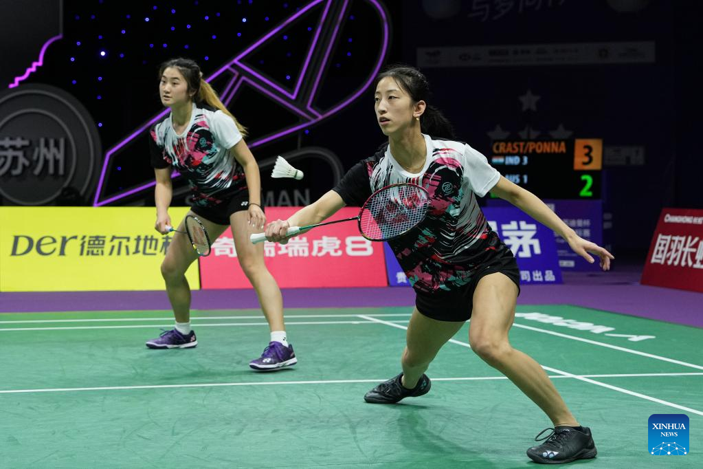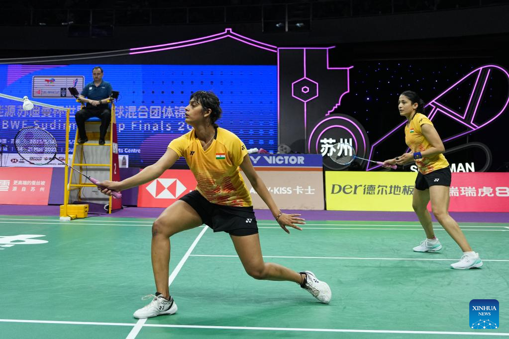 Tanisha Crasto/Ashwini Ponnappa (R) of India compete during the women's doubles match against Kaitlyn Ea/Angela Yu of Australia during the group C match between India and Australia at BWF Sudirman Cup in Suzhou, east China's Jiangsu Province, May 17, 2023. (Xinhua/Du Yu)