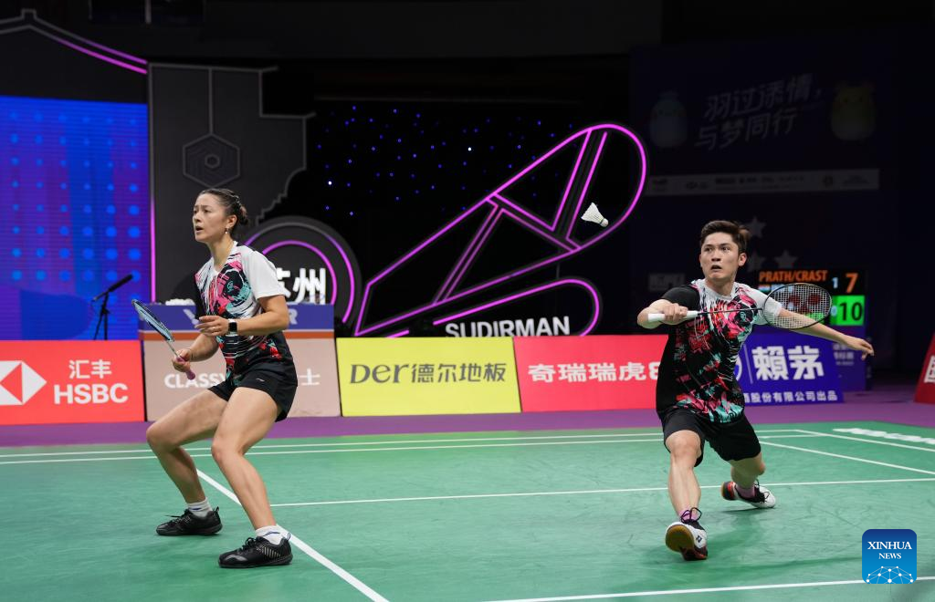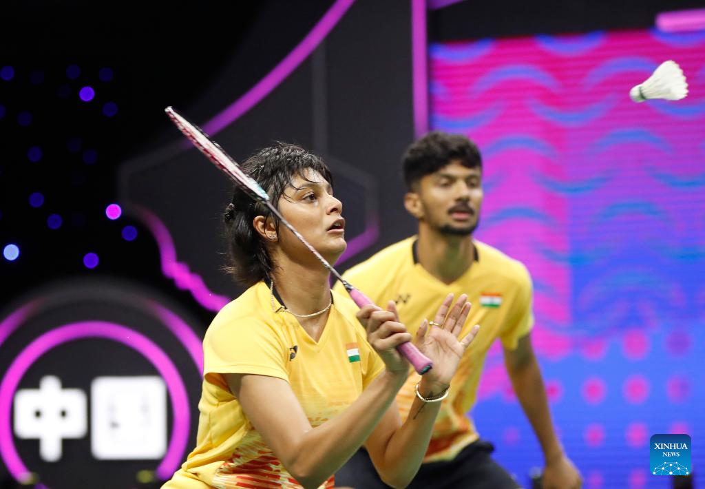 Sai Pratheek K (L) /Tanisha Crasto of India compete during the mixed doubles match against Kenneth Zhi Hooi Choo/Gronya Somerville of Australia during the group C match between India and Australia at BWF Sudirman Cup in Suzhou, east China's Jiangsu Province, May 17, 2023. (Xinhua/Liu Wenhui)